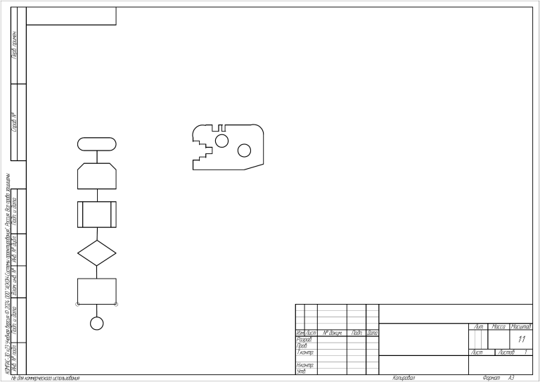 КОМПАС-3D v23 Учебная версия © 2024 ООО "АСКОН-Системы проектирования", Россия. Все права защищены. Инв. подл. Подп. и дата Взам. инв. Инв. дубл. Подп. и дата Не для коммерческого использования Лит. Изм. Лист Разраб. Пров. Т.контр. докум. Лист Копировал Масса Масштаб Подп. Дата 1:1 Листов Н.контр. Утв. Формат A3 1 Справ. Перв. примен.
