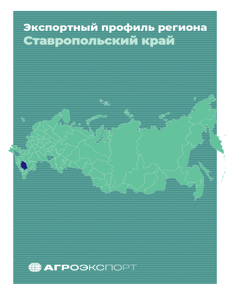 Экспортный профиль региона Ставропольский край СТАВРОПОЛЬСКИЙ КРАЙ Экспортный профиль региона КЛЮЧЕВЫЕ ПОКАЗАТЕЛИ 60,4 $ млн 588,2 $ млн (16 место*, без изменения позиции**) Объем экспорта продукции АПК, 2022 г.* 9,74 (41 место +4 позиции) (нетто-экспортер) Объем импорта продукции АПК, 2022 г. Экспорт / импорт АПК 6,2% (47 место) 437 $ млн *указаны места среди 85 регионов России ** относительно уровня 2021 г. 34,7% (21 место) Доля экспорта АПК в общем экспорте региона, 2021 г. Доля импорта АПК в общем импорте региона, 2021 г. 12,4% Ставропольский край 4,3% Россия 36,6% Ставропольский край 15,9% Россия Средний за 3 года вклад сельского хозяйства в ВРП (регион / РФ) Средний за 3 года вклад пищевой отрасли в обрабатывающую промышленность (регион / РФ) Плановый показатель экспорта к 2024 г. (в сопоставимых ценах 2020 г. в соответствии с ФП «Экспорт продукции АПК») Отраслевой Продуктовый Страновой Регион 0,28 0,22 0,15 Россия 0,21 0,01 0,06 Индексы концентрации экспорта (регион / РФ) Методика расчёта индекса концентрации приведена на стр. 22 настоящего обзора Здесь и далее данные за 2022 год – предварительные, по состоянию на 08.12.2022 Ставропольский край является одним из ведущих регионов России по уровню развития агропромышленного производства. Сельское хозяйство является основной хозяйственной специализацией экономики региона. Сочетание благоприятных агроклиматических условий определяет специализацию Ставропольского края на развитии растениеводства, в особенности, на выращивании зерновых культур и подсолнечника (по производству зерна регион занимает 3 место в России). Высокий уровень развития агропромышленного комплекса определяет значимое место региона в экспорте продукции АПК России. В сравнении с 2021 годом экспорт из региона увеличился на 14,2% в стоимостном выражении. Регион занимает лидирующие позиции по экспорту зернового сорго (1 место), мяса птицы (2 место) и продуктов перемола (4 место). Наиболее значимыми предприятиями-экспортерами продукции АПК являются ООО «Ставропольский бройлер» и ООО "Маслоэкстракционный завод "Ресурс", входящие в группу агропромышленных предприятий «Ресурс», зерноторговая компания ООО «Агромаркет», Агрофирма «Золотая Нива» и ряд других предприятий. Экспортоориентированные инвестиционные проекты, реализуемые на территории региона, направлены на развитие основных отраслей специализации: зерновой, пищевой и мясной. Всего запланировано к реализации 15 инвестиционных проектов общей стоимостью 7,5 млрд рублей. ОБЗОР. ЭКСПОРТНЫЙ ПРОФИЛЬ РЕГИОНА | СТАВРОПОЛЬСКИЙ КРАЙ 2 ЭКСПОРТ ПРОДУКЦИИ АПК 700,0 1,45 1,44 1,31 600,0 1,45 1,39 1,40 1,20 1,01 500,0 1,60 1,00 400,0 0,80 300,0 0,60 200,0 0,40 100,0 314,3 0,0 2017 260,5 368,4 2018 2019 Экспорт АПК, млн долл. США 400,4 525,2 588,2 2020 2021 % от экспорта АПК России 0,20 0,00 2022 Источник: ФТС России (данные на 31.12.2022) Экспорт продукции АПК Ставропольского края характеризуется положительной динамикой и в совокупности в период с 2018 по 2022 гг. вырос более чем в 2 раза. Основной прирост экспорта обусловлен увеличением отгрузок масложировой и мясной продукции, а также зерновых культур. Доля региона составляет 1,45% от совокупного объема экспорта продукции АПК России и 70,7% от совокупного экспорта продукции АПК Северо-Кавказского федерального округа. ОТРАСЛЕВАЯ СТРУКТУРА ЭКСПОРТА АПК Зерновая Мясная 8,3 8,3 16,7 12,7 1,8 2,6 18,1 54,0 2017 29,4 Масложировая 5,8 10,6 2,7 Пищевая Рыбная 10,1 6,5 8,5 6,3 8,3 6,3 16,8 17,1 32,1 27,9 28,4 39,6 40,3 39,8 2020 2021 2022 11,8 Прочая 