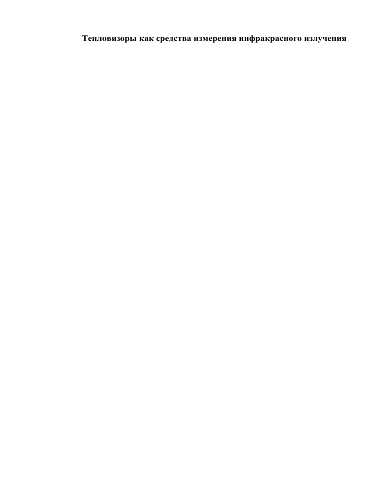 Тепловизоры как средства измерения инфракрасного излучения Содержание Введение ....................................................................................................................... 3 1. Описание тепловизоров .......................................................................................... 4 2. Принцип действия тепловизоров........................................................................... 5 3. Принцип работы тепловизоров .............................................................................. 7 4. Технические характеристики тепловизора ......................................................... 11 Заключение ................................................................................................................ 13 Список используемой литературы .......................................................................... 14 2 Введение Актуальность темы. Применение тепловизора - быстро расширяющаяся область с почти неограниченным потенциалом. Любой объект излучает энергию, причем большая часть энергии приходится на невидимое человеческому глазу инфракрасное излучение. Тепловизор широко применяется в военной сфере. Для операций в условиях плохой видимости или в ночное время суток. Применение тепловизора в медецине для диагностики не только даёт возможность определить, болен пациент или здоров, но и с высокой точностью указать источник проблемы и поставить диагноз. Тепловизоры применяют пожарные и спасательные службы для поиска пострадавших, выявления очагов горения, анализа обстановки и поиска путей эвакуации. Широкое применение тепловизоры нашли в химической промышленности и металлургии. Объект исследования - это сбор данных и анализ принципа работы тепловизора как средства измерения инфракрасного излучения. Предметом исследования служит изучение практических свойств тепловизора. Цель исследования: изучить и проанализировать действие тепловизоров при измерении инфракрасного излучения. Для достижения поставленной цели необходимо решить ряд задач: - изучить описание тепловизоров; - рассмотреть принцип действия тепловизоров; - проанализировать принцип работы тепловизоров; - исследовать технические характеристики тепловизоров. Структура реферата: введение, четыре параграфа, заключение и список используемой литературы. 3 1. Описание тепловизоров Первым тепловизионным прибором, появившимся в конце 20-х годов, был эвапорограф, принцип действия которого основан на визуализации фазового рельефа масляной пленки, образующейся на поверхности мембраны при проекции на противоположную сторону этой мембраны теплового изображения1. Эвапорогафы имели низкую пороговую чувствительность, большую инерционностью и давали изображение с очень малым контрастом. В 40-е годы наметились две тенденции в развитии тепловизионных приборов. К первой группе приборов относятся тепловизоры, в которых для преобразования оптического сигнала ИК-диапазона в электрический сигнал используется принцип оптико-механического сканирования (ОМС), а ко второй группе приборов тепловизорах - тепловизоры первого типа с электронным используются сканированием.+ одноэлементные В или многоэлементные инфракрасные приемники излучения мгновенного действия, а в тепловизорах второго типа в качестве приемников излучения используются инфракрасные видиконы, пириконы, а сейчас уже и матричные приемники излучения, так называемые фокальные матрицы, работающие в режиме накопления зарядов и основанные на различных физических принципах. Тепловизоры имеют как минимум один объектив. Объек