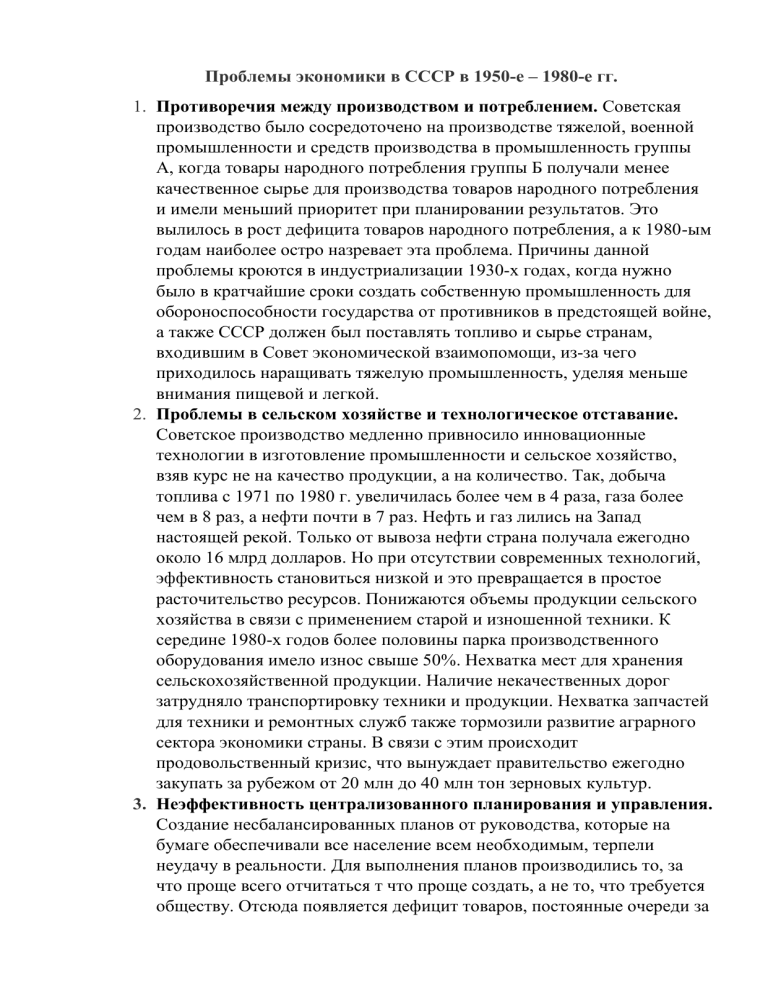 Проблемы экономики в СССР в 1950-е – 1980-е гг.
