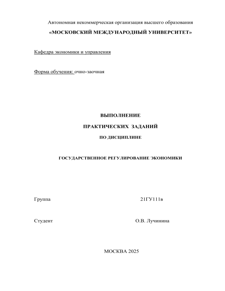 ГОСУДАРСТВЕННОЕ РЕГУЛИРОВАНИЕ ЭКОНОМИКИ
