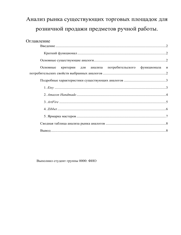 К основным аналогам разрабатываемой торговой площадки относятся: Etsy, Amazon